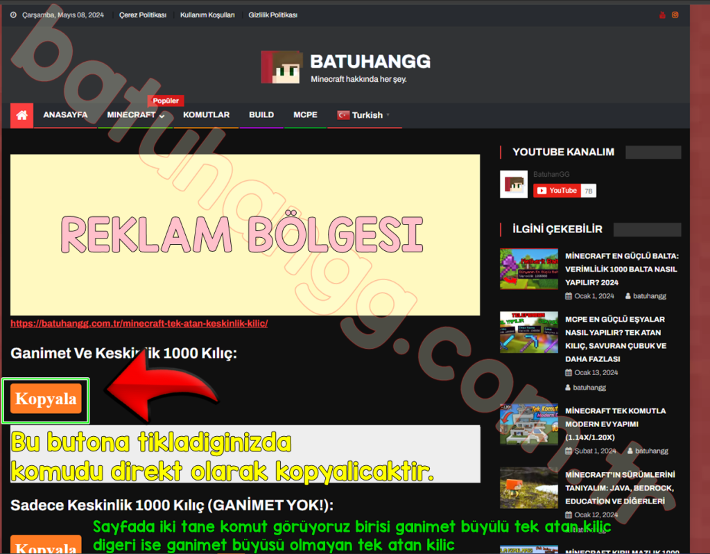 Pekala, bunu söylemeniz açıkçası biraz kalbimi kırıyor. Bu tarz bir kararı almamın asıl sebebi aslında bazı komutların çook uzun olması ve youtube üzerinden direkt olarak paylaşımın imkansız olduğu zamanlar olmasıydı. Ayrıca kendi resmi sitemizin olması fikrinin bile beni çok heyecanlandırdı. Gerçekten de kitlemizin büyümesi için çok güzel bir adım ayrıca bu komutları yazmak için çok uzun zamanımı harcıyorum ve özellikle tek komutla modern ev yapımı, tek komutla tarla ve ev yapımı videolarına verdiğim emekler çok büyük. Bazı komutları yazarken sabahlıyordum ve çok zor koşullar geçirdim. Ben bazı komutları yazarken deprem bile yaşadım maalesef. Bu komutlar %100 bana ait komutlar olduğu için BatuhanGG Resmi Web Sitesinde paylaşmam bir ihtiyaç haline geliyordu aslında. Umarım bu sorunuzun cevabı olmuştur 😊❤